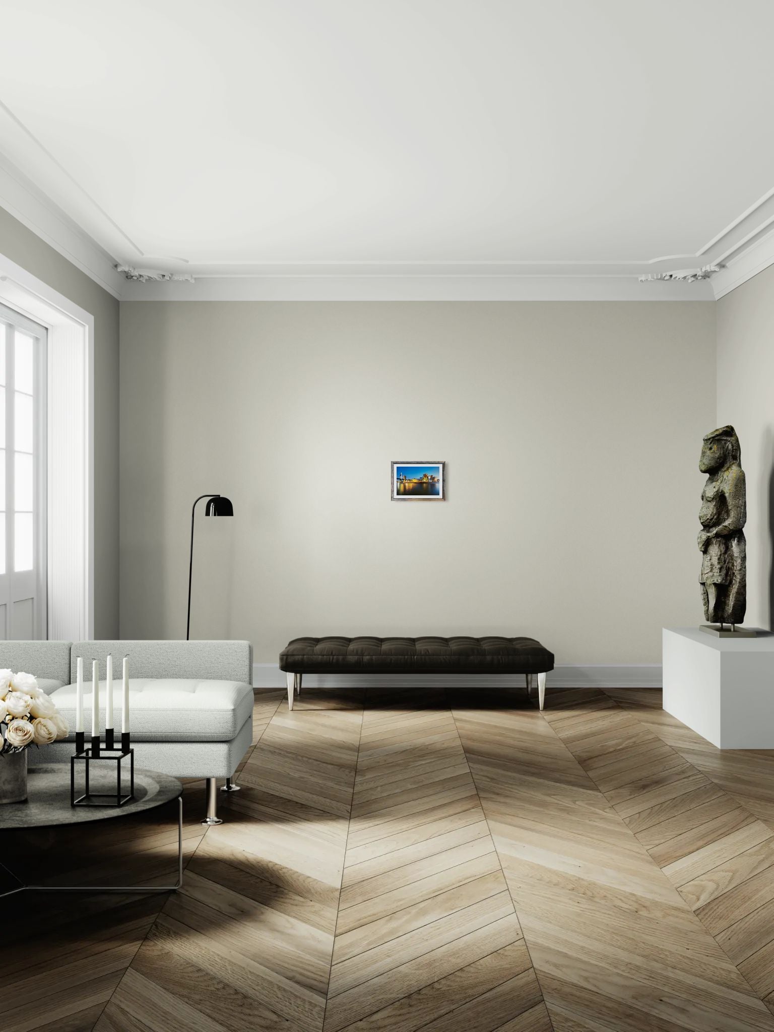 Photographed in the serene glow of blue hour, this long-exposure image captures the Guggenheim Museum in Bilbao from across the river, where calm water mirrors the museum’s glowing lights and sculptural curves. The stillness of the scene enhances the building’s futuristic architecture, creating a striking contrast between soft evening tones and the shimmering metallic façade. A perfect piece for lovers of modern design, urban landscapes, and atmospheric night photography.