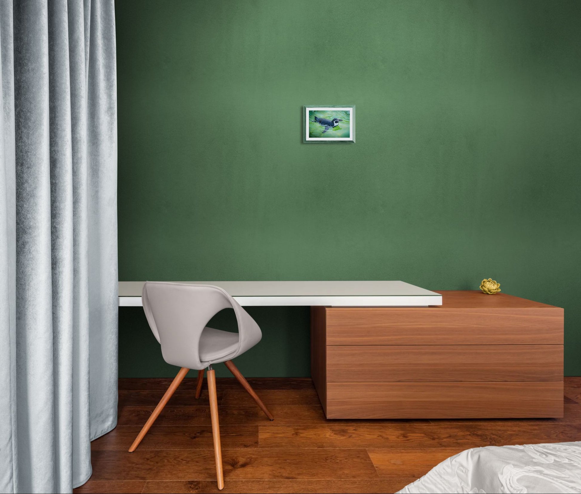 This delightful photograph captures a penguin gliding smoothly through crystal-green water, enjoying a refreshing swim. The gentle ripples and shimmering reflections highlight the bird’s playful spirit and natural grace. A charming and cheerful image that brings a splash of personality and freshness to any space—perfect for animal lovers and fans of expressive wildlife photograp